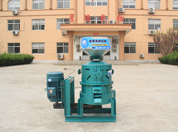 糧食從料斗經(jīng)插板在重力作用下均勻地流到機(jī)體內(nèi)旋轉(zhuǎn)的砂輪蓋板上,有推糧翅甩到到機(jī)體內(nèi)圓錐面與砂輪間的碾白室中,在碾白室內(nèi)有砂輪的研削,殼糠與米脫離,殼糠一部分從糠篩篩孔在風(fēng)扇的吸力下被排除碾室,順機(jī)體排除機(jī)外,其余的翅推至出米嘴經(jīng)除糠器流出機(jī)外。由除糠篩的氣流在糧食從出米嘴排出時(shí),米粒則流至機(jī)體底部,由砂輪坐上的撥米刀排米。糧食的碾白效率由砂輪粒度、機(jī)器轉(zhuǎn)數(shù)、碾室空隙、壓力和阻力來決定。碾室壓力可通過控制進(jìn)出口流量及改變推糧翅長(zhǎng)短來調(diào)節(jié)。碾室阻力可通過調(diào)節(jié)阻刀位置來改變。除糠效果可通過動(dòng)調(diào)風(fēng)板的位置以改變除糠器的氣流來控制。